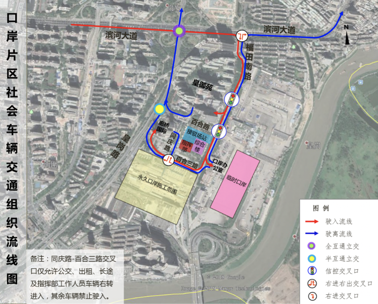 口岸片區(qū)社會(huì)車(chē)輛交通組織流線圖