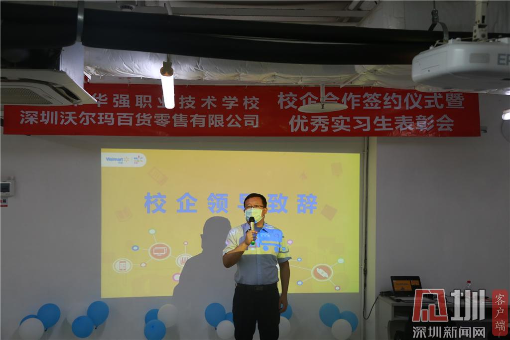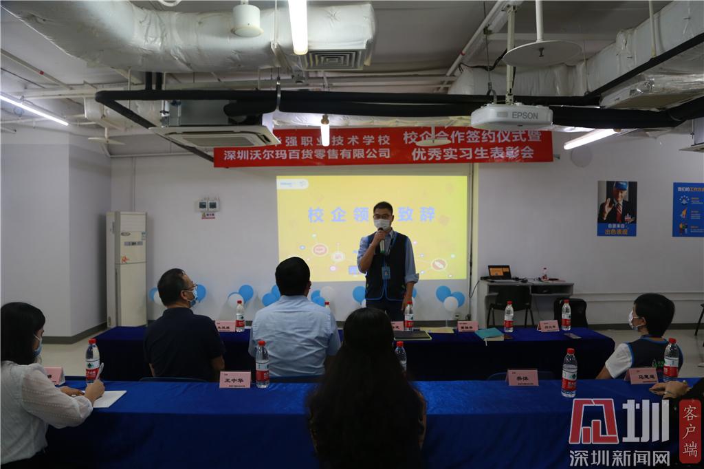 見圳客戶端·深圳新聞網(wǎng)2020年6月24日訊(記者 曹園芳 通訊員 沈琳 喬沐)昨天下午,深圳市華強職業(yè)技術(shù)學校與深圳沃爾瑪百貨零售公司簽訂校企合作協(xié)議。趙盟校長、朱俊康副校長、西校區(qū)王中華主任、校企合作辦黃琳主任、商貿(mào)部喬沐部長、財經(jīng)部馬慧連副部長、辦公室沈琳老師及學校優(yōu)秀實習生代表出席了簽約儀式暨優(yōu)秀實習生表彰會。