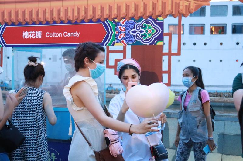 記者在現(xiàn)場(chǎng)看到,現(xiàn)場(chǎng)設(shè)置了糖畫(huà)、剪影、捏面人、皮影戲等中國(guó)傳統(tǒng)民俗攤位,不少居民有序排隊(duì)參與?;顒?dòng)中,居民領(lǐng)取圖鑒在每個(gè)攤位完成打卡,還可以現(xiàn)場(chǎng)試穿漢服。場(chǎng)外的大唐不倒翁表演也吸引了眾人目光。精心打扮的不倒翁小姐姐隨風(fēng)搖曳,與圍觀群眾打招呼,場(chǎng)面好不熱鬧。民樂(lè)團(tuán)現(xiàn)場(chǎng)演奏的《春江花月夜》《彩云追月》等民樂(lè),更令活動(dòng)增添幾分傳統(tǒng)風(fēng)韻。