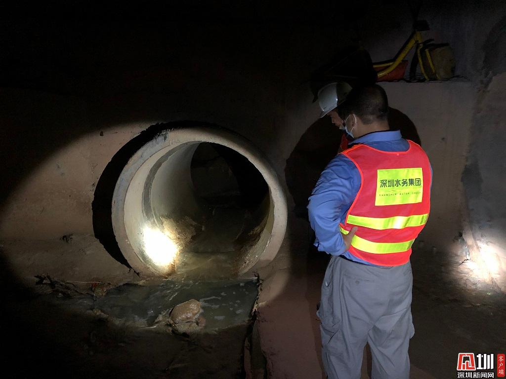 工作人員對地下暗涵進(jìn)行檢查。