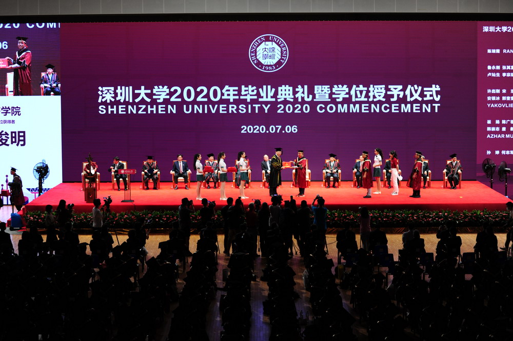 2020年,深圳大學(xué)共有6974名應(yīng)屆本科畢業(yè)生。截止6月25日,共有5828名本科生按照教學(xué)計劃要求完成專業(yè)學(xué)習(xí),按期取得畢業(yè)證書。200名應(yīng)屆本科畢業(yè)生獲得推免生資格。1201名同學(xué)被北京大學(xué)、清華大學(xué)、牛津大學(xué)等國內(nèi)外高校和科研機構(gòu)錄取為碩士研究生,占本屆畢業(yè)生人數(shù)的17.63%。2020屆學(xué)生積極參與各級各類學(xué)科競賽,榮獲國際、國家、省、市各級獎勵。在各類學(xué)科競賽中,共獲獎446項,包括55個國際獎項、222個國家級獎項。此外,今年高等學(xué)歷繼續(xù)教育學(xué)士學(xué)位申請人數(shù)達(dá)1489人。