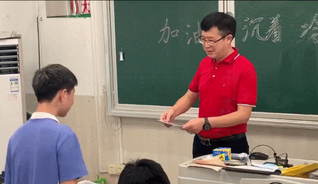 七點五十分,高三年級老師叫同學(xué)名字挨個上臺發(fā)放準(zhǔn)考證,提醒學(xué)生考試注意技巧,細心規(guī)范,按照平時周測的情況發(fā)揮就可以了。祝大家旗開得勝,馬到成功。