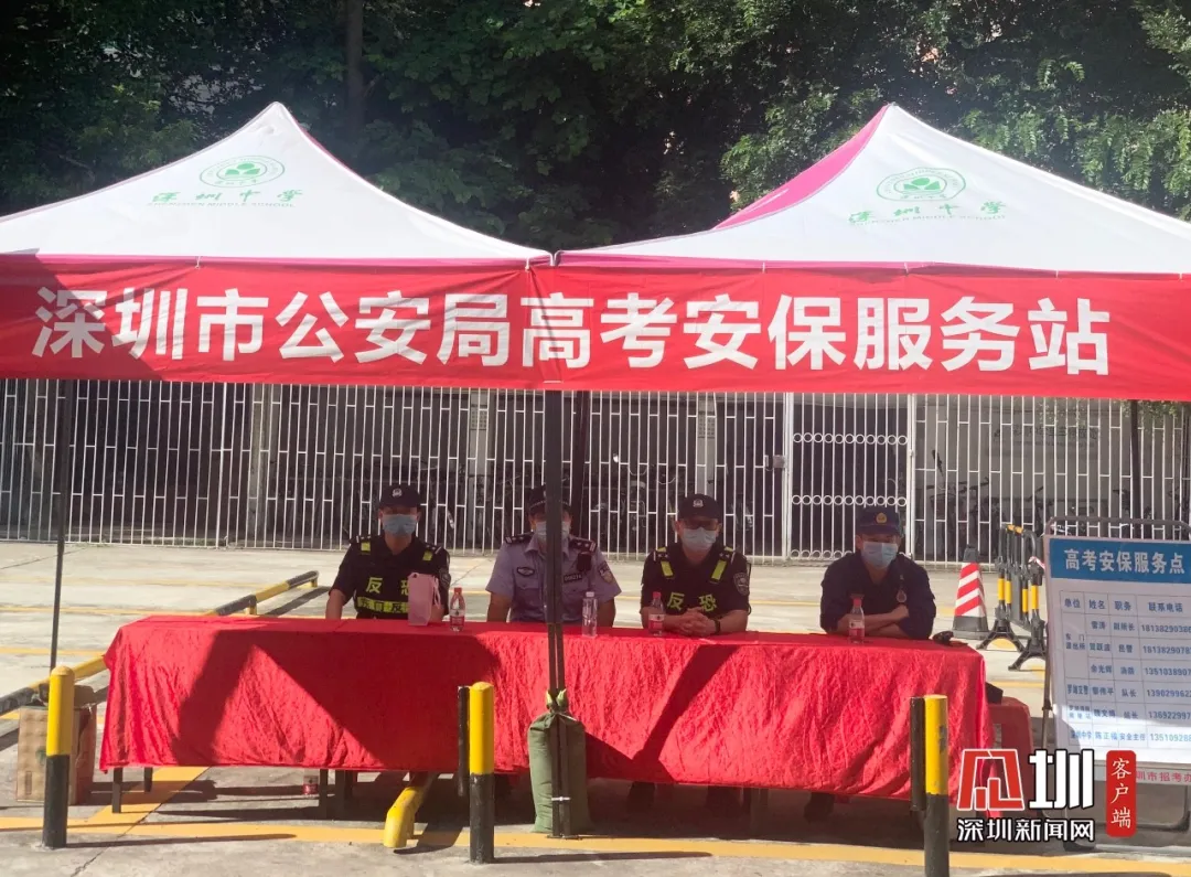 同時(shí),在深圳中學(xué)考點(diǎn)外,市公安局還設(shè)立了高考安保服務(wù)站。