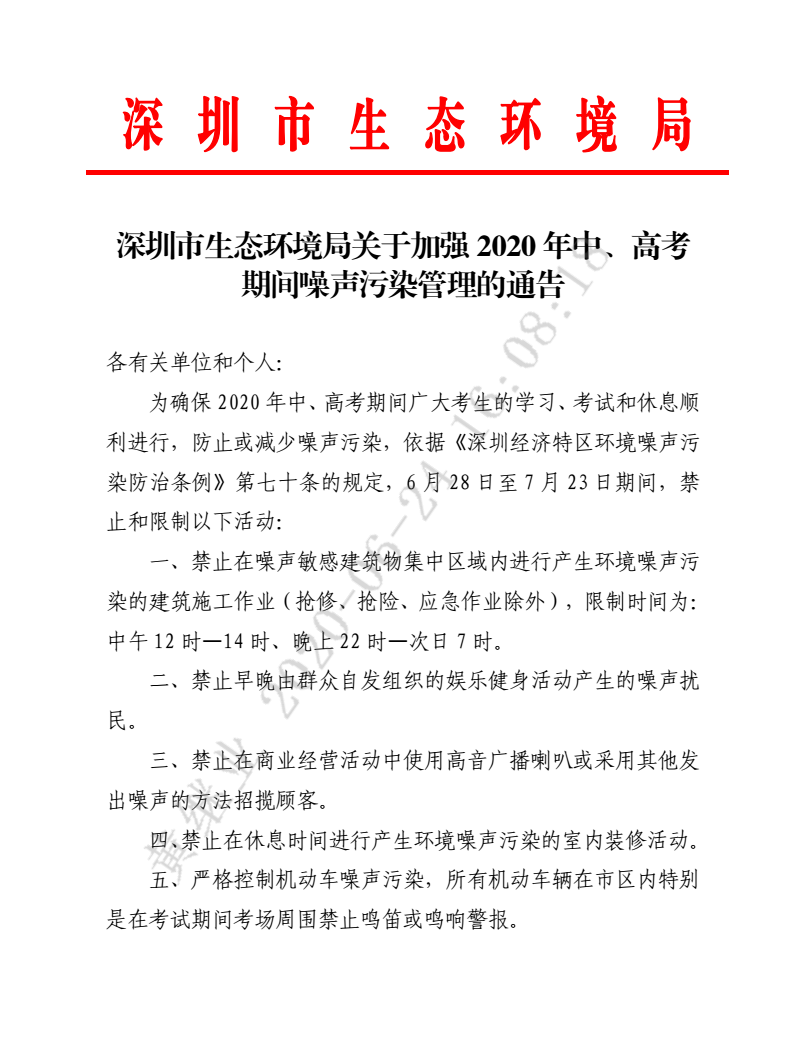 根據(jù)《深圳經(jīng)濟(jì)特區(qū)環(huán)境噪聲污染防治條例》的規(guī)定,高考考點(diǎn)方圓500米范圍內(nèi)工地要求24小時(shí)禁止施工作業(yè),黃木崗綜合交通樞紐一工區(qū)剛好在此范圍內(nèi),因此高考兩天全面禁止施工。