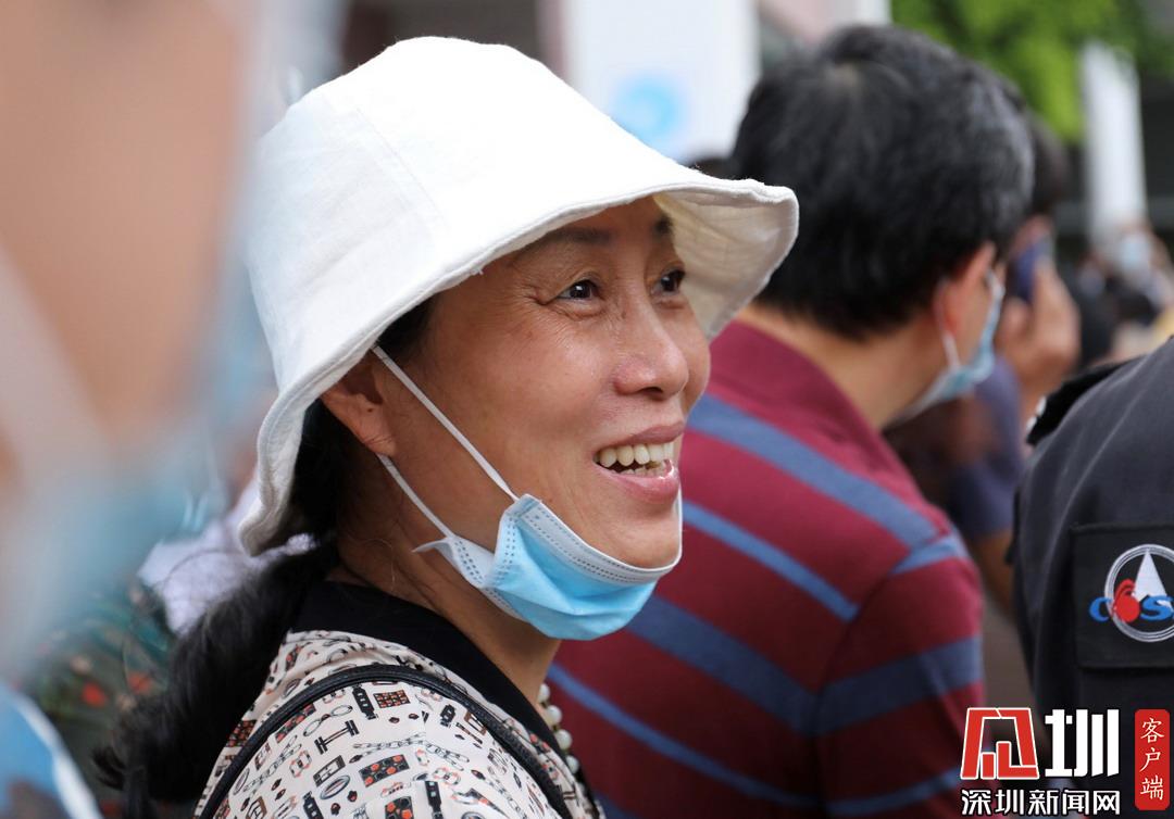 深圳高級(jí)中學(xué)考點(diǎn)外家長(zhǎng)看見(jiàn)孩子笑臉相迎。