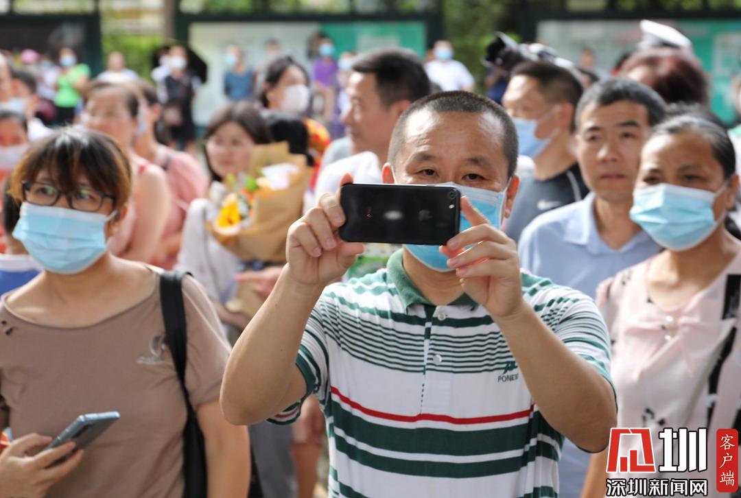 家長舉起手機(jī),靜候于深圳高級(jí)中學(xué)考點(diǎn)門口。