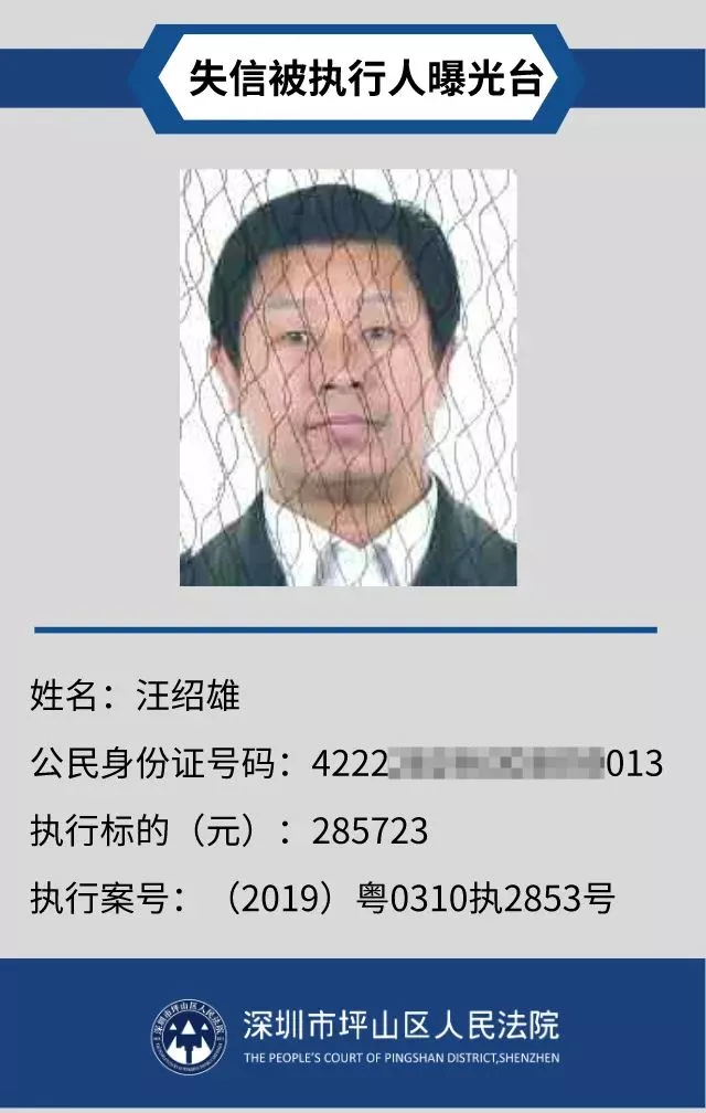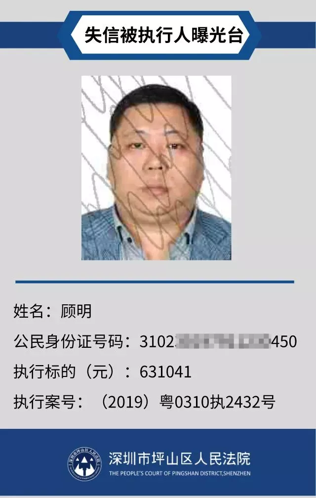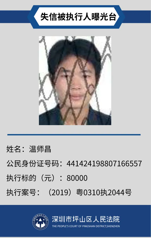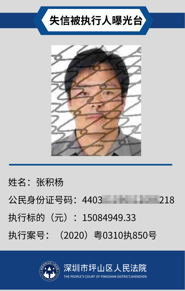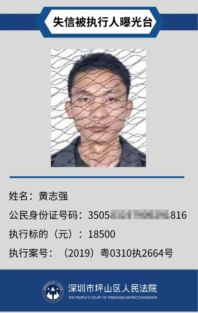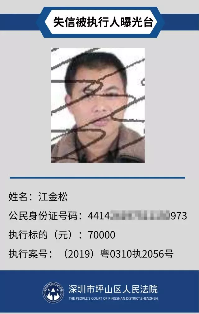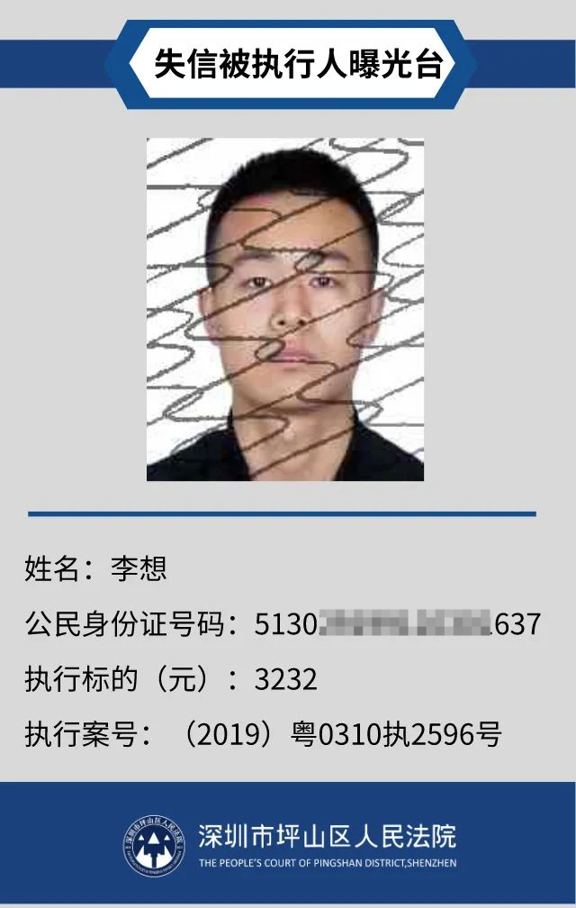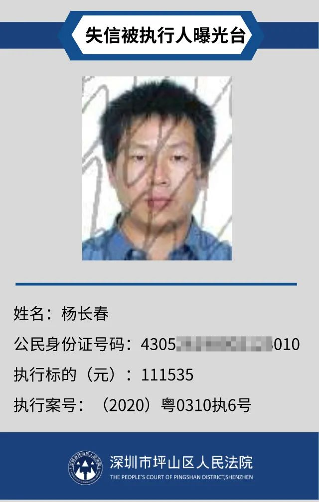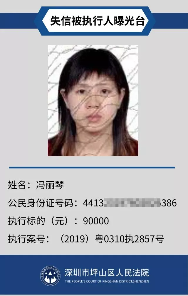 為督促被執(zhí)行人自覺履行生效法律文書確定的義務,推進社會誠信體系建設,深圳市坪山區(qū)人民法院根據(jù)《中華人民共和國民事訴訟法》第二百五十五條、《最高人民法院公布失信被執(zhí)行人名單信息若干規(guī)定》第一條和第七條之規(guī)定,現(xiàn)對31名失信被執(zhí)行人予以公布。名單信息根據(jù)案件結案情況及時更新,歡迎舉報失信被執(zhí)行人行蹤及財產(chǎn)線索,相關信息核實請聯(lián)系深圳市坪山區(qū)人民法院執(zhí)行局。