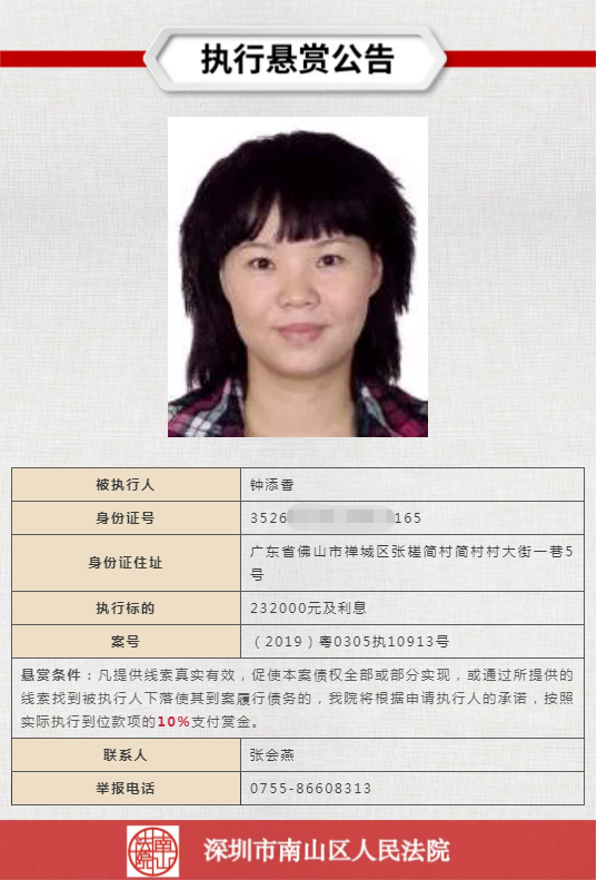 舉報(bào)電話詳見(jiàn)執(zhí)行懸賞公告