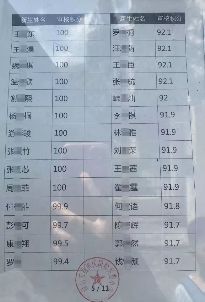 2020年福田區(qū)公辦小一新生錄取名單來了,部分學校最低錄取積分曝光