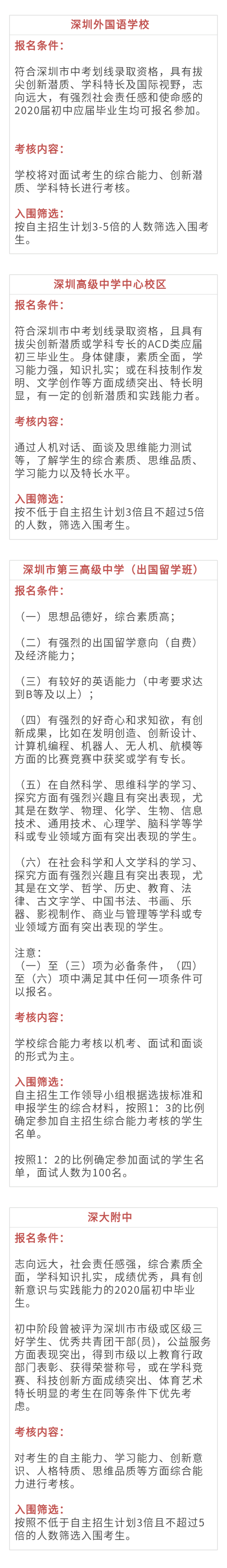 對(duì)于自招,各高中有哪些要求?小南匯總了深圳一類(lèi)自主招生19所高中信息,一起來(lái)看看吧!