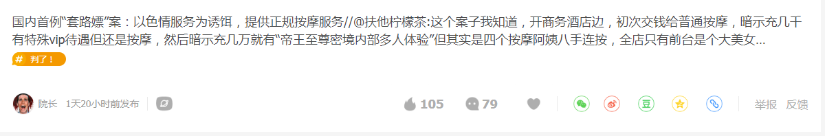 據(jù)報道,浙江一家SPA俊顏館初次交錢有普通按摩,暗示客戶充值有特殊服務(wù),實(shí)際上是高級一點(diǎn)的按摩,再暗示充幾萬可享受“帝王至尊密境內(nèi)部多人體驗(yàn)”,其實(shí)就是四個按摩阿姨八手連按。