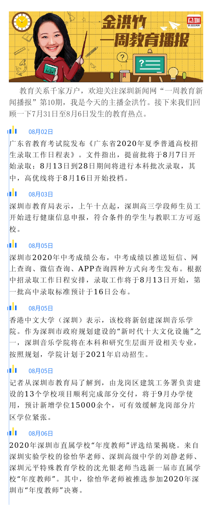 一周教育播報(bào)|第10期:深圳公布中考成績(jī)?“年度教師”評(píng)選揭曉