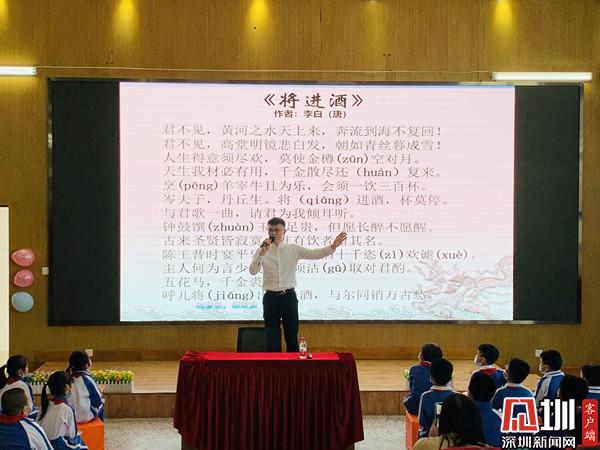 深圳新聞網(wǎng)訊(深圳新聞網(wǎng)記者 彭桂紅 通訊員 梁文雅)為進(jìn)一步弘揚中華優(yōu)秀傳統(tǒng)文化,近日,深圳市錦田小學(xué)特邀青年文化學(xué)者、深圳市百姓學(xué)習(xí)之星、深圳市公益閱讀推廣人、深圳市首屆家園文化文學(xué)會會長晉玉東為廣大師生開展了一場別開生面的“中國古典詩詞朗誦藝術(shù)鑒賞——兼談如何朗誦好一首詩”公益文化講座。羅湖區(qū)錦田小學(xué)德弘校區(qū)副校長劉向陽、羅湖區(qū)錦田小學(xué)德弘校區(qū)主任張俊暉、羅湖區(qū)未來學(xué)校主任謝淑紅、德弘二年級家委代表以及語文科組老師,一同參加?;顒佑砂嘀魅瘟何难藕蛯W(xué)生劉沛東、張家琪共同主持,近200名學(xué)生參加了講座活動。整場講座師生熱情高漲,主講嘉賓深入淺出、娓娓道來,參與學(xué)生思維活躍、表現(xiàn)積極,帶動校園形成了學(xué)習(xí)詩詞文化的良好氛圍。