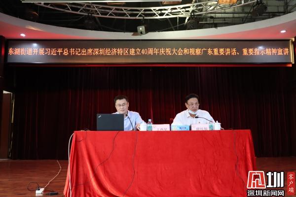見圳客戶端·深圳新聞網(wǎng)11月26日訊(記者 劉晨 通訊員 魏官明 陳惠冰)11月26日下午,深圳市羅湖區(qū)東湖街道舉行習近平總書記出席深圳經(jīng)濟特區(qū)建立40周年慶祝大會和視察廣東重要講話、重要指示精神宣講報告會,活動特邀羅湖區(qū)委宣講團成員、區(qū)發(fā)展研究中心黨組書記、主任王西星作主題宣講。 街道黨政領導,街道各辦、中心業(yè)務負責人,各社區(qū)黨委書記、副書記,股份公司董事長,街道機關各黨支部及各社區(qū)黨建組織員、黨員共100余人參加了宣講活動。活動由街道黨工委副書記、人大工委主任謝統(tǒng)敏主持。