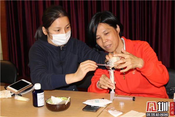 據(jù)了解,劉燦輝浸染芳香研究十幾年,有著豐富的芳療經(jīng)驗(yàn)。在課堂上,劉燦輝耐心地引導(dǎo)社區(qū)婦女在芳香中忘掉壓力和煩惱,體驗(yàn)愉快,開(kāi)拓出精神力量。20位社區(qū)婦女還在老師的帶領(lǐng)下,動(dòng)手制作潤(rùn)手霜。大家相互幫助,彼此配合,經(jīng)過(guò)調(diào)試、攪拌、加熱、瓶裝等過(guò)程,每位學(xué)員都擁有了一支專屬于自己的潤(rùn)手霜。