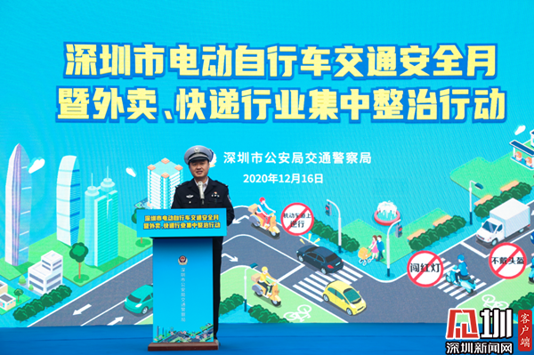 見圳客戶端·深圳新聞網(wǎng)12月16日訊(記者 郭含笑 通訊員 劉明)12月16日下午,深圳交警在羅湖區(qū)東門文化廣場舉行深圳市電動自行車交通安全月暨外賣、快遞行業(yè)集中整治行動啟動儀式?,F(xiàn)場邀請全市外賣、快遞企業(yè)代表參加啟動儀式。深圳市交警局局長徐煒、深圳市交警局副局長馮新毅及相關(guān)領(lǐng)導(dǎo)班子出席了啟動儀式。