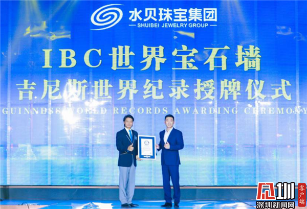 在本次“天工精制”見證盛典活動(dòng)上,舉行了IBC世界寶石墻吉尼斯世界紀(jì)錄授牌儀式,水貝珠寶集團(tuán)副總裁盧森榮從吉尼斯世界紀(jì)錄官方認(rèn)證官楊紹鵬手中接過認(rèn)證證書,標(biāo)志著IBC世界寶石墻挑戰(zhàn)世界“面積最大,珠寶種類最豐富”的寶石壁畫紀(jì)錄成功。全場嘉賓一同親歷“世界之最”的誕生,高端賽事見證國際殊榮,IBC世界寶石墻閃耀而來,這件劃時(shí)代的藝術(shù)作品成為世界珠寶文化的傳播載體與精神堡壘,是一個(gè)偉大的壯舉。