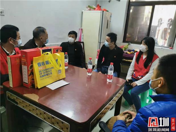 隨后,陳鵬、藍(lán)岸率領(lǐng)報(bào)業(yè)集團(tuán)紀(jì)檢監(jiān)察室黨支部、深圳新聞網(wǎng)黨總支部黨員代表,在清水河街道黨工委副書(shū)記劉曉春、街道四級(jí)調(diào)研員陳小龍、梅園社區(qū)黨委書(shū)記曾建輝、副書(shū)記陳秋珊等人的陪同下,對(duì)梅園社區(qū)抗疫先鋒黨員、單親婦女、困難居民、殘疾人士進(jìn)行分組探訪慰問(wèn)并送上新春祝福。大家?guī)厦篮玫淖8?、喜慶的春聯(lián)、慰問(wèn)金、臘腸等慰問(wèn)品,分四組慰問(wèn)走訪。