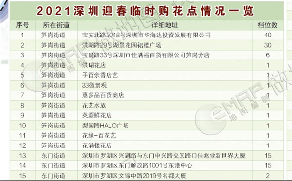 2021深圳迎春臨時(shí)購(gòu)花點(diǎn)情況一覽。