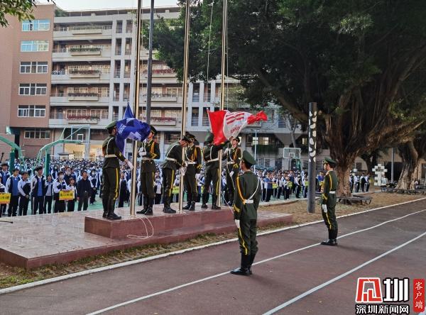 羅湖外國(guó)語(yǔ)學(xué)校初中部開學(xué)典禮上,校國(guó)旗班準(zhǔn)備升旗。