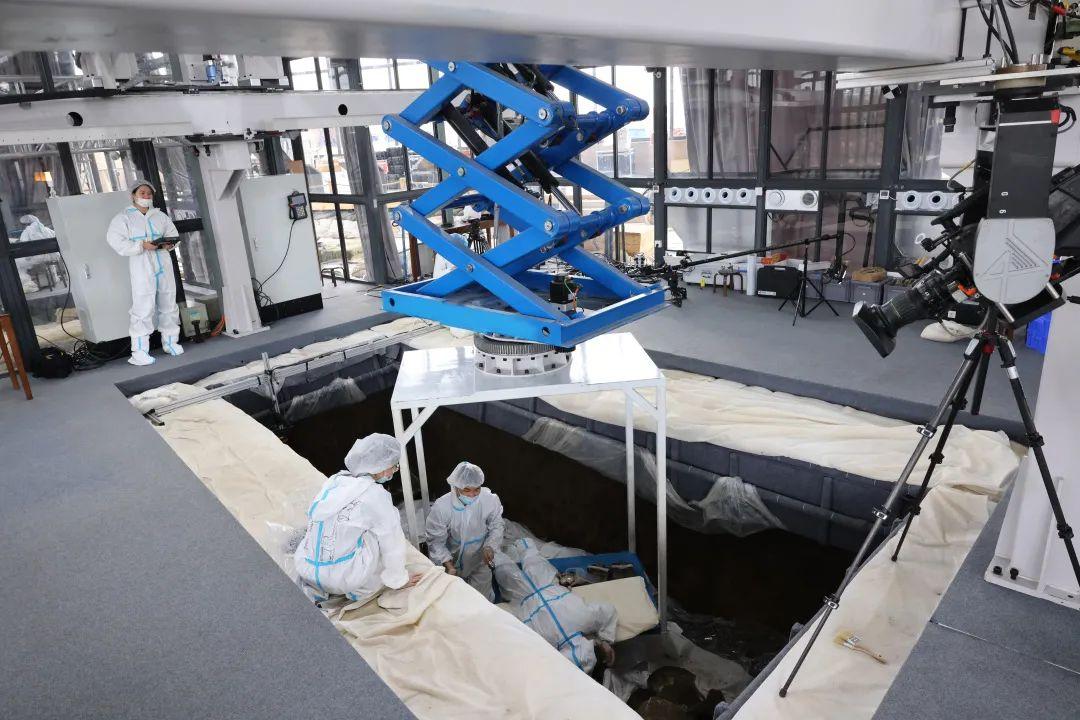 記者看到,在考古發(fā)掘現(xiàn)場設有考古實驗室,此舉屬于首創(chuàng),實現(xiàn)考古出土文物與文物保護無縫對接。