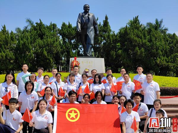 在鄧小平銅像廣場,大家精神抖擻、意氣風發(fā),手持飄揚的旗幟,再一次舉起右手,莊嚴宣誓。