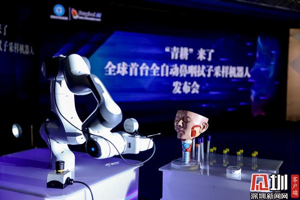 見圳客戶端·深圳新聞網(wǎng)5月17日訊(記者 郭含笑 通訊員 羅醫(yī)宣)5月17日,全球首臺(tái)智能核酸采樣機(jī)器人發(fā)布會(huì)在深圳羅湖舉辦,該機(jī)器人由深圳市羅湖醫(yī)院集團(tuán)、杭州湖西云百生科技有限公司共同研發(fā),是全球首臺(tái)全自動(dòng)鼻咽拭子核酸采樣機(jī)器人原型機(jī)。