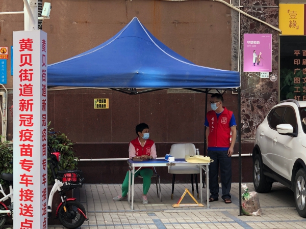 炎炎烈日,為貼心服務(wù)群眾,黃貝街道設(shè)立了接種新冠疫苗專車接送點。接送點的義工告訴記者,在戶外工作特別消耗水,一個上午就喝掉四五瓶飲用水,雖然準(zhǔn)備了防曬的雨棚,但路上的熱空氣卻躲不掉,一會兒下來也是大汗淋漓,不過能為群眾服務(wù),盡快建立全民免疫陣線,這份守候很值得。