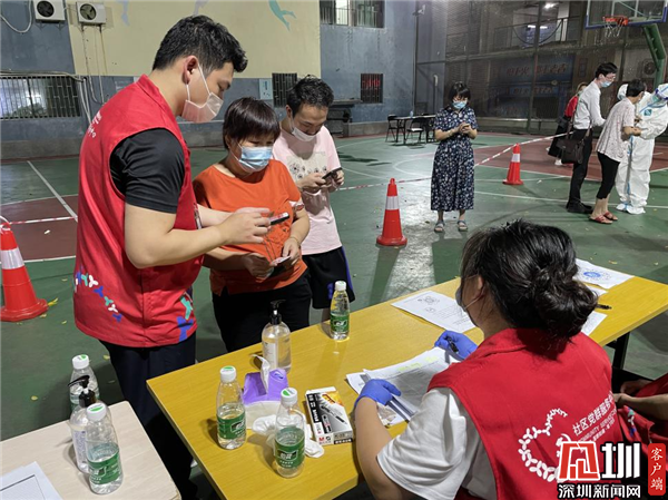 見圳客戶端·深圳新聞網(wǎng)5月31日訊(記者 劉嘉敏 通訊員 鄭躍芳)當(dāng)前,深圳疫情防控“外嚴(yán)防輸入、內(nèi)嚴(yán)防反彈”形勢依然嚴(yán)峻,羅湖蓮塘片區(qū)與鹽田交界,核酸檢測工作不僅時間緊、任務(wù)重,而且面臨巨大的壓力。為堅(jiān)決打贏這場疫情防控硬仗,5月26日至29日期間,深圳市羅湖區(qū)蓮塘街道坳下社區(qū)在社區(qū)文化廣場設(shè)立了臨時核酸檢測點(diǎn),不斷完善優(yōu)化核酸檢測工作方案,積極配合醫(yī)護(hù)人員開展上門動員、掃碼登記、分診、秩序維護(hù)及后勤服務(wù)等保障工作,醫(yī)護(hù)人員、街道下沉干部、社區(qū)工作人員、股份公司民兵及黨員群眾日夜兼程,加班加點(diǎn),確保核酸檢測工作有序高效開展。