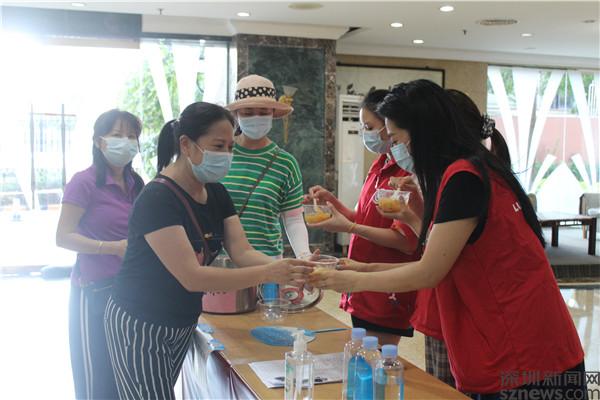 讀特客戶端·深圳新聞網(wǎng)2021年6月7日訊(記者 劉嘉敏 通訊員 楊紀歐)近日,炎炎烈日下,三位居民推著一輛平板車,車上放著兩個大鍋,鍋里裝著濃濃的糖水,正朝著老圍花園的出入口走來,她們是羅湖區(qū)桂園街道老圍社區(qū)老年人協(xié)會的會長蔡東風(fēng)和委員賴秀文、陳艷芳,要給守衛(wèi)在老圍花園和名仕閣5個出入口的社區(qū)工作人員、社工和志愿者們以及保安員送上糖水,以表達他們對疫情防控的支持和參與抗疫的決心。
