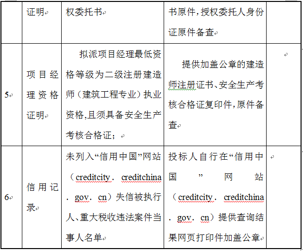4、擬派項(xiàng)目經(jīng)理最低資格等級(jí)為二級(jí)注冊建造師(建筑工程專業(yè))執(zhí)業(yè)資格,且須具備安全生產(chǎn)考核合格證;