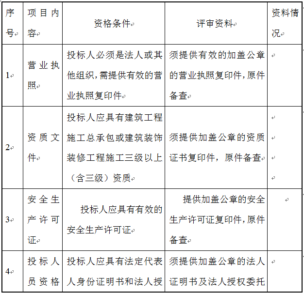2.評議標(biāo)準(zhǔn)以招標(biāo)人和招標(biāo)機(jī)構(gòu)的意見為準(zhǔn);注:1.以上資格審查合格條件標(biāo)準(zhǔn)中如出現(xiàn)一處不符合要求,其投標(biāo)報(bào)名將不被接受;