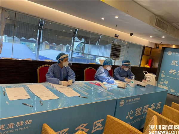 心理健康服務(wù)團(tuán)隊(duì)正在心理服務(wù)區(qū)等待為隔離人員進(jìn)行心理評估。
