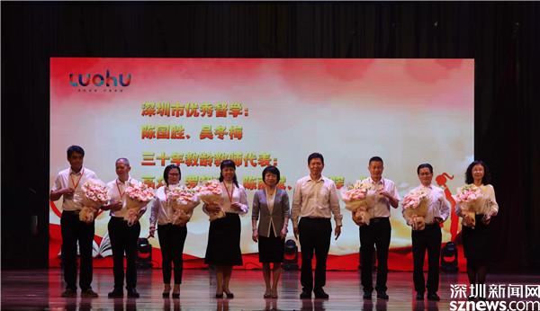 會(huì)上,羅湖區(qū)委書記羅育德,深圳市教育局黨組成員、副局長王水發(fā),羅湖區(qū)委副書記、區(qū)人民政府黨組書記、代區(qū)長范德繁等領(lǐng)導(dǎo)出席大會(huì)并為深圳市十佳校長、2021年市級(jí)年度教師、2021年區(qū)幼兒園年度教師,三十年教齡教師、功勛園丁、教育先進(jìn)單位、先進(jìn)教育工作者、優(yōu)秀班主任和優(yōu)秀教師等代表頒獎(jiǎng)。