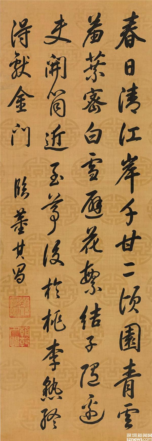 現場,還有嘉慶帝楷書七言詩、光緒帝楷書“恭儉惟德”、慈禧行書“頤壽”、肅親王百壽圖對屏、林則徐行書《圣主得賢臣頌》、劉墉行書節(jié)錄沈括《夢溪筆談》、丁汝昌行書詩句等作品。據主辦方介紹,《清代宮廷及名家書法展》之三十二件紫禁丹青,匯聚了甌江草堂主人易蘇昊先生二十多年收藏之精華。藏品多來自于文物公司和著名藏家,可謂來源有序。易蘇昊先生文物藝術品收藏之門類廣博,中國古代書畫、近現代書畫、當代書畫、前衛(wèi)性書畫、綾本書畫、瓷器、玉器、青銅器、竹木牙雕、文房四寶、鼻煙壺、雜項、西洋雕塑等,無所不包,件件精致。此次《清代宮廷及名家書法展》之三十二件紫禁丹青,乃其從收藏的數千件藏品中,遴選出的帝王御筆、詞臣墨跡之精華。自雍正至光緒,跨越近二百年,充分展現了清代宮廷書法的整體面貌,以供廣大藏家雅賞。