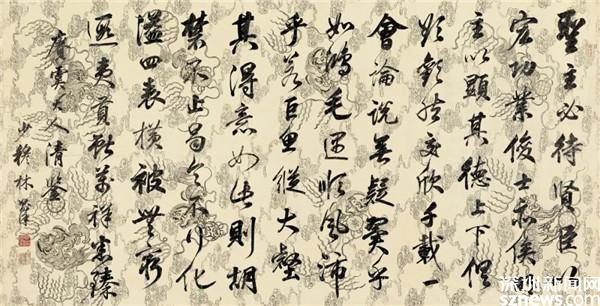 在預展現場,一件雍正帝“積善成德”緙絲引起現場嘉賓的注意,此作為雍正寫完后“積善成德”四字后,命宮廷江南織造將其做成了一件緙絲,工藝尤為珍貴。緙絲又稱“刻絲”,以通經斷緯技法織造,工藝獨特,非具有高度熟練的技巧和藝術造詣不能勝任。乾隆帝行書御筆節(jié)錄《快雪堂記》,將此記刻于快雪堂刻石之首。此記,除詳述獲得此帖之經過外,又道明《快雪堂法帖》由來,因第一卷首刻王羲之《快雪時晴帖》,故名。此記為行書,寫得自然流暢,毫無做作之態(tài),雖揮灑自如卻絕無草率之感,可見乾隆書法功底之深。