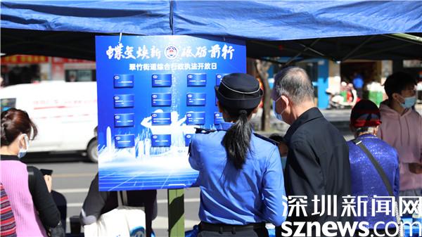 當(dāng)天活動(dòng)現(xiàn)場(chǎng),翠竹街道辦事處副主任、綜合行政執(zhí)法辦公室主任黎雄軒向市民展示街道一年來(lái)的執(zhí)法工作成果及下一步的工作計(jì)劃,并呼吁市民朋友以主人翁的姿態(tài)積極參與街道城市管理工作,為打造干凈、整潔、有序、文明的城區(qū)環(huán)境貢獻(xiàn)自己的一份力量。