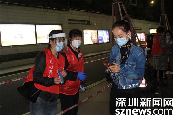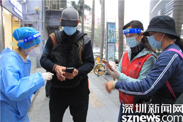 “楊妹,我來(lái)了,還帶來(lái)了一個(gè)人?!?3日晚,正在羅湖區(qū)桂園街道老圍社區(qū)禧程酒店核酸檢測(cè)點(diǎn)忙碌的社工楊女士,接到志愿者溫寶珍的電話。溫寶珍從“0107疫情”開(kāi)始以來(lái),每天都在核酸檢測(cè)點(diǎn)協(xié)助核酸檢測(cè),這晚她把自己的兒媳婦吳永霞也帶來(lái)了。“婆婆剛從其他社區(qū)的核酸檢測(cè)點(diǎn)做完義工回來(lái),聽(tīng)說(shuō)老圍社區(qū)需要人,放下飯碗就來(lái)了。婆婆這么大年紀(jì)了還沖在前面,我做兒媳婦的,怎么也要向婆婆學(xué)習(xí)啊?!眳怯老紝?duì)社工說(shuō)。“應(yīng)該的應(yīng)該的,疫情當(dāng)前,每個(gè)人都有義務(wù)出來(lái)與病毒作戰(zhàn),光是靠社區(qū)工作者不行,他們太累了?!睖貙氄溥呎f(shuō)邊幫兒媳穿好義工服,把粵核酸的二維碼交給兒媳,并教兒媳如何在手機(jī)上查驗(yàn)。