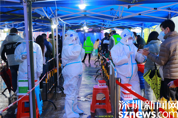 讀特客戶端·深圳新聞網(wǎng)2022年2月25日訊(記者 吳艷 通訊員 蔡歡 黃利生)連日來氣溫驟降,風(fēng)雨交加,然而在羅湖區(qū)東曉街道的大街小巷上,還有這樣一群人,他們身穿防護(hù)服,把守在各個(gè)路口和小區(qū)門口,查驗(yàn)居民“雙碼”;他們頂著風(fēng)雨,挨家挨戶上門動(dòng)員居民核酸檢測(cè);他們晝夜不停,打電話、核數(shù)據(jù),確保核酸檢測(cè)不漏一人;他們?cè)?、7度的寒冷天氣里堅(jiān)守核酸檢測(cè)點(diǎn),引導(dǎo)居民有序排隊(duì)檢測(cè)核酸。這些抗疫一線工作者,猶如一道道銅墻鐵壁,鑄起守衛(wèi)轄區(qū)群眾生命健康的安全防線。