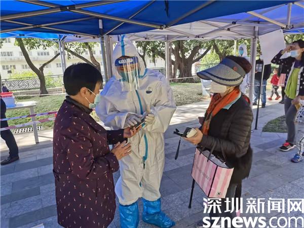 玉龍社區(qū)的核酸點(diǎn)位于金湖路邊的金湖公園,連接著銀湖、坭崗、玉龍三個(gè)社區(qū),每日的檢測量多則6000多人次,少則2000多人次。