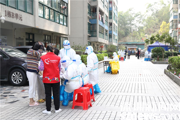 2月28日早上,蓮塘街道各社區(qū)集結(jié)工作人員支援長(zhǎng)嶺社區(qū),每個(gè)樓棟由長(zhǎng)嶺社區(qū)黨委委員“一對(duì)一”掛點(diǎn),幫助居民采購(gòu)配送物資,協(xié)助核酸檢測(cè)排查、流調(diào)排查、生活垃圾清理等,全力保障小區(qū)住戶日常生活需求。據(jù)蓮塘街道工作人員介紹,為保證核酸采樣快速、高效,長(zhǎng)嶺社區(qū)每棟樓樓下都安排了一個(gè)核酸采樣點(diǎn),助力核酸檢測(cè)采樣工作有序開(kāi)展。