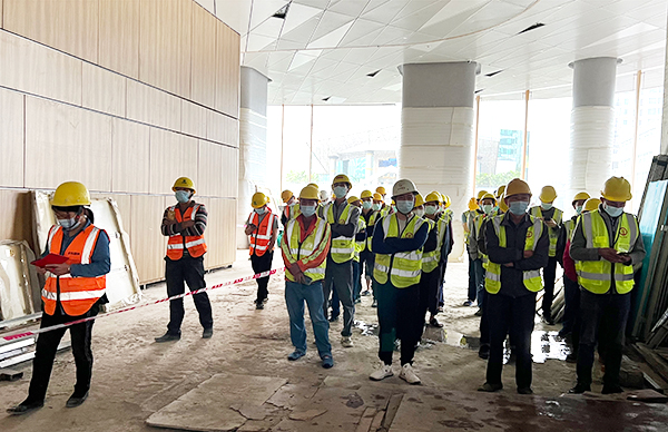 龍信建設(shè)集團(tuán)有限公司仁恒世紀(jì)大廈項(xiàng)目經(jīng)理陳建飛介紹,在保障在安全生產(chǎn)的前提下,公司對(duì)員工進(jìn)行了集中管理,做到員工宿舍和施工地點(diǎn)兩點(diǎn)一線,就餐則采用集中配餐。在員工的管理上,以班組、工種、時(shí)段進(jìn)行分門別類進(jìn)行管理?!爱?dāng)前,項(xiàng)目施工總?cè)藬?shù)為229名,按照‘應(yīng)檢盡檢、不漏一人’的原則,全部都進(jìn)行了核酸檢測(cè)。”仁恒世紀(jì)大廈項(xiàng)目經(jīng)理陳建飛如是說(shuō)。