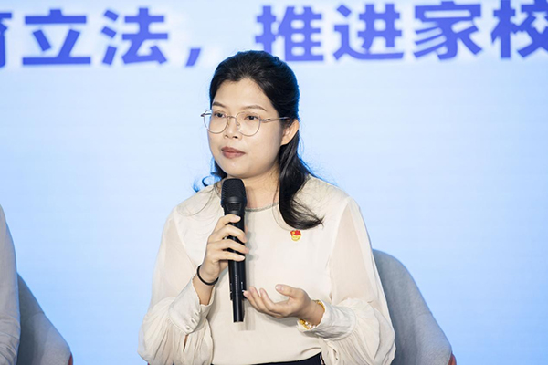 “家長要做好家庭教育,家庭教育要配合學(xué)校教育,學(xué)校和家庭配合是做好家庭教育的關(guān)鍵”,家長代表深圳市兒童青少年健康發(fā)展協(xié)會理事安天麗也談到自己對家、校、社各盡其職、合作共贏的理解,她認(rèn)為家長要積極創(chuàng)建各種親子家庭活動,緊密親子關(guān)系;積極參與社區(qū)組織的家庭教育指導(dǎo)和實踐活動,提升家庭教育能力;同時為孩子創(chuàng)造社會實踐的機會。