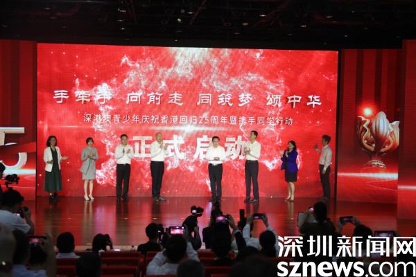 香港教育局局長楊潤雄,澳門教育及青年發(fā)展局副局長黃嘉祺,深圳市委教育工委副書記、市教育局黨組成員楊平分別致辭,充分肯定了攜手同學(xué)行動對深港澳文化交流的貢獻,并希望未來三地能有更加深入、密切的聯(lián)系,互惠雙贏,切實增強深港澳青少年的民族自豪感和凝聚力。隨后,領(lǐng)導(dǎo)與港澳青年代表上臺啟動深港澳青少年慶祝香港回歸25周年系列活動。