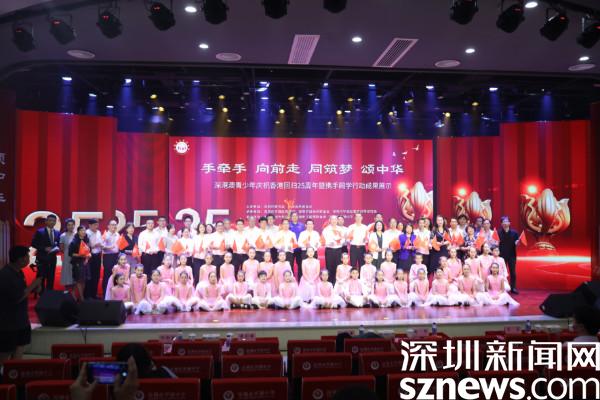 讀特客戶端·深圳新聞網(wǎng)2022年5月25日訊(記者 謝秋平 通訊員 周文干)5月25日下午,由深圳市教育局、深圳海外聯(lián)誼會主辦,深圳市羅湖區(qū)教育局、深圳羅湖海外聯(lián)誼會、深圳市羅湖區(qū)教育科學(xué)研究院承辦,香港深圳青年總會、深圳工程師聯(lián)合會、深圳市羅湖中學(xué)協(xié)辦的“深港澳青少年慶祝香港回歸25周年暨攜手同學(xué)行動成果展”在深圳市羅湖中學(xué)舉行?;顒右浴笆譅渴郑蚯白?,同筑夢,頌中華”為主題,展示了深港澳少年攜手同學(xué)行動的系列成果。深圳市委統(tǒng)戰(zhàn)部二級巡視員周文軍,深圳市委教育工委副書記、市教育局黨組成員楊平,羅湖區(qū)委常委、統(tǒng)戰(zhàn)部部長黃劍峰參加活動,香港教育局局長楊潤雄、澳門教育及青年發(fā)展局副局長黃嘉祺通過網(wǎng)絡(luò)連線方式參與活動。活動在羅湖教育云平臺全程直播,深港澳三地100多所學(xué)校通過線上直播觀看。