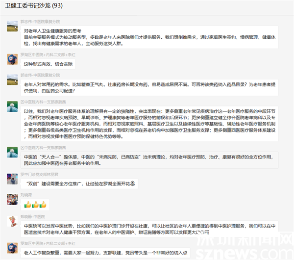 此次沙龍活動在一個小時內(nèi),收到各書記參與討論的信息超過200條,大家參與情緒熱烈。下一步,羅湖區(qū)委衛(wèi)生健康工委將把此次“書記沙龍”提出的好建議作為下一步老年健康服務(wù)工作的改進方向,力促沙龍形成的經(jīng)驗、思路切實轉(zhuǎn)化為實際舉措和工作亮點,在黨建業(yè)務(wù)融合、健康共建共治、探索創(chuàng)新實踐上持續(xù)發(fā)力,不斷提升群眾的滿意度和獲得感,真正成為群眾的“暖心人”“貼心人”。