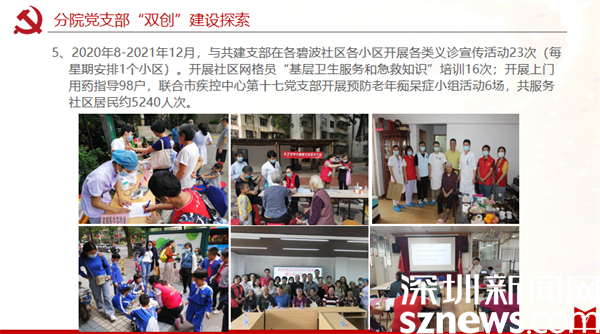 區(qū)中醫(yī)院康復(fù)分院黨支部以黨建引領(lǐng)“雙創(chuàng)”工作取得良好實效,與黃貝社區(qū)黨委的共建和交叉任職推動醫(yī)療資源和社區(qū)服務(wù)的資源共享,把“社區(qū)關(guān)愛服務(wù)”落到實處。通過黨組織聯(lián)動,增強了居民與醫(yī)護之間的溝通聯(lián)系,有力推動65歲老人體檢和疫苗接種,大大提升居民認(rèn)可度、滿意度??祻?fù)分院黨支部與社區(qū)黨支部和黨員義工合作,為轄區(qū)內(nèi)70歲以上生活不便孤寡老人提供全方位的關(guān)愛服務(wù),開展上門訪視服務(wù)535人次;深入各小區(qū)開展各類義診宣傳、健康知識推廣活動等36場,惠及居民5000余人。