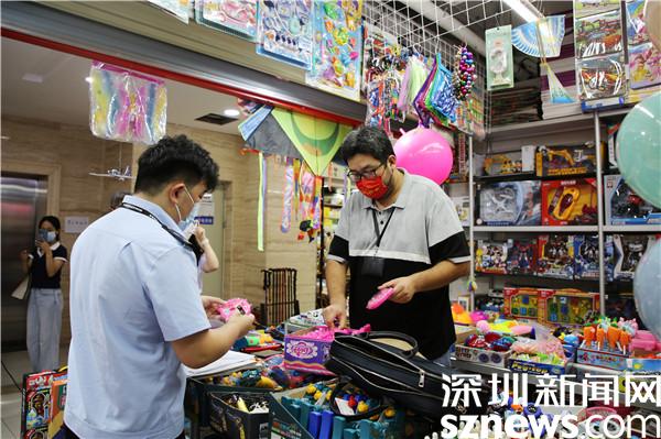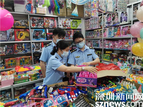 當(dāng)天,執(zhí)法人員對位于羅湖區(qū)筍崗文具玩具專營市場的33家經(jīng)營商戶進行檢查,檢查發(fā)現(xiàn)其中3家商店經(jīng)營的“兒童美妝包”等兒童化妝品外包裝上未標(biāo)識化妝品備案號,當(dāng)事人現(xiàn)場無法向執(zhí)法人員提供涉事兒童化妝品的備案材料,涉嫌經(jīng)營未經(jīng)備案的化妝品,此外,專項行動中執(zhí)法人員還查處了3家涉嫌經(jīng)營“三無”產(chǎn)品的玩具類經(jīng)營商戶。經(jīng)初步清點,現(xiàn)場共查獲涉嫌違法的兒童化妝品、玩具20余件,執(zhí)法人員現(xiàn)場依法將上述物品予以扣押,目前案件正在進一步調(diào)查中。