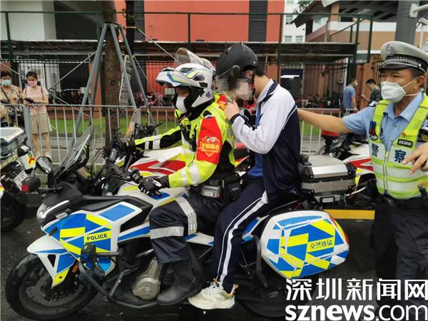 上午7時45分許,羅湖交警大隊黃貝中隊在深圳市第二實(shí)驗(yàn)學(xué)校開展高考護(hù)航執(zhí)勤期間,接到現(xiàn)場一名高考生求助,稱其遺落考試用品在明珠學(xué)校宿舍。為避免耽誤考生進(jìn)入考場,獲悉該情況后,黃貝中隊林偉標(biāo)中隊長迅速安排現(xiàn)場執(zhí)勤隊員葉兆年、羅益華護(hù)送該考生返回至明珠學(xué)校尋找。接到該指令后,現(xiàn)場隊員一方面安排考生坐上警用摩托車并佩戴好頭盔,一方面打開警燈在前后方開道進(jìn)行護(hù)送。由于時間緊迫,在翻找無果后,現(xiàn)場鐵騎又迅速將該考生送回考場。8時15分許,在現(xiàn)場派出所、交警鐵騎的協(xié)助下,該名考生及時進(jìn)入深圳市第二實(shí)驗(yàn)學(xué)校高中部考點(diǎn)參加考試。