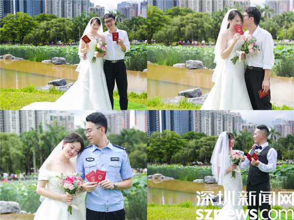 讀特客戶端·深圳新聞網(wǎng)2022年6月17日訊(記者 李慧 通訊員 楊嘉雯)6月中旬的洪湖公園,荷花盛開,17日早上,羅湖區(qū)民政局把婚姻登記頒證廳搬到這優(yōu)美環(huán)境、文明的氛圍中,舉辦“新時代心羅湖,荷創(chuàng)文明新婚俗”婚禮登記集體頒證儀式?,F(xiàn)場以并蒂蓮為背景,以文明、時尚、簡約作為主題元素,提倡“重登記、強責任、崇節(jié)儉”的文明新婚俗。